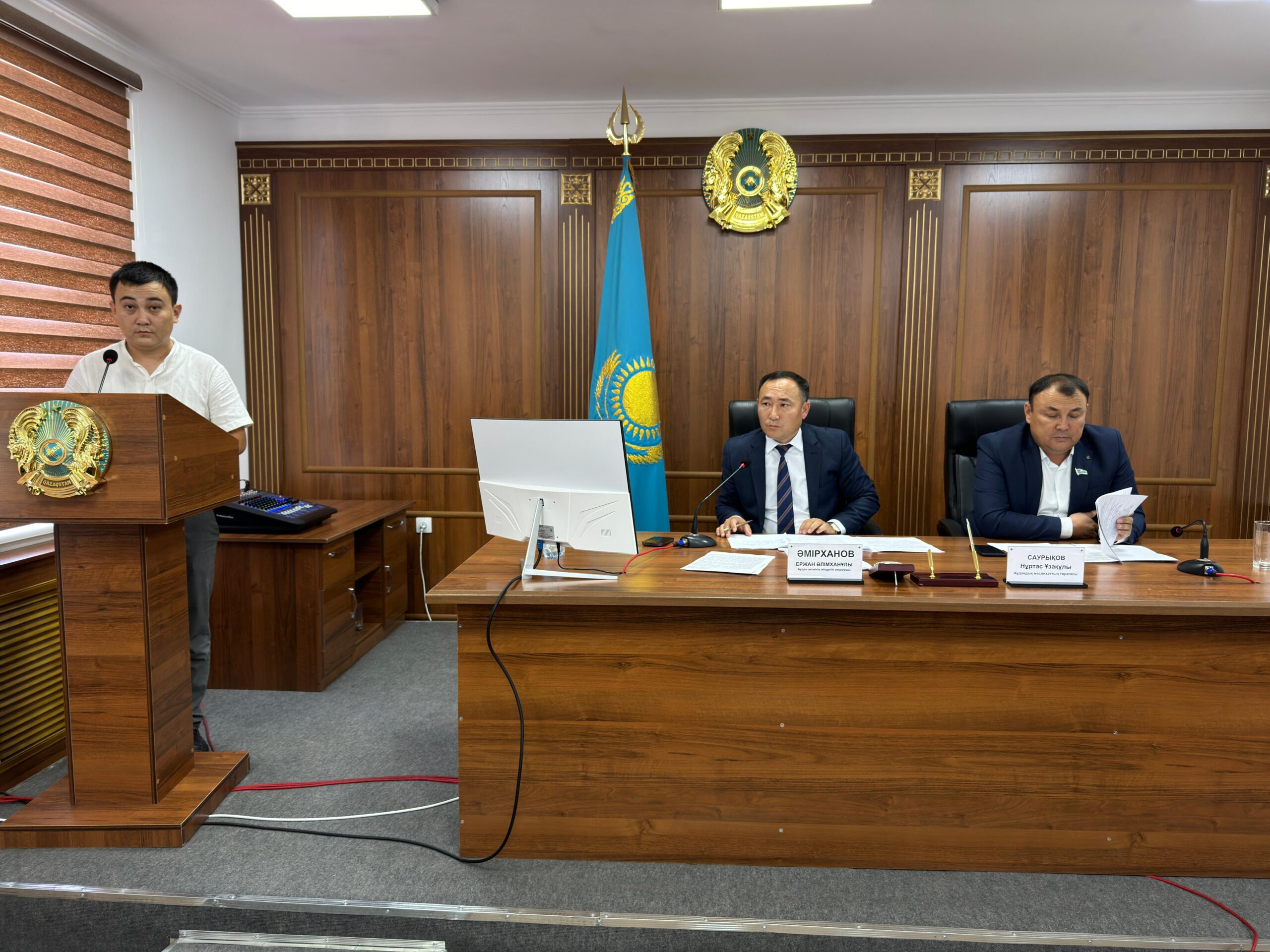 Аудан әкімдігінің мәжіліс залында аудан әкімінің міндетін атқарушы Ержан Әмірхановтың төрағалығымен аудан активі толық құрамда қатысқан аппараттық жиын өтті.  Кеңестің күн тәртібінде «Жалпыға бір­дей декларациялау жұмыстары туралы», «Тұрмыстық қатты қалдықтарды шығару және полигон жұмыстарына дайындық барысы туралы», «Аудан бойынша жүргізіліп жатқан құрылыс нысандары туралы», «9 айға қаржы игерілуінің болжамы туралы», «Аудандағы мәдениет күндеріне дайындық барысы туралы», «Жамбыл облысындағы Әдеп жөніндегі кеңестің 25.07.2024 жылғы №03-9/32, №03-9/33 және №03-9/39 шешімдерін қарау туралы» негізгі мәселелер мен ««Мектепке жол акциясы» республикалық қайырымдылық акциясы туралы», ««Мейірім» жобасы бойынша атқарылған жұмыстар туралы» қосымша мәселелер қаралды.
